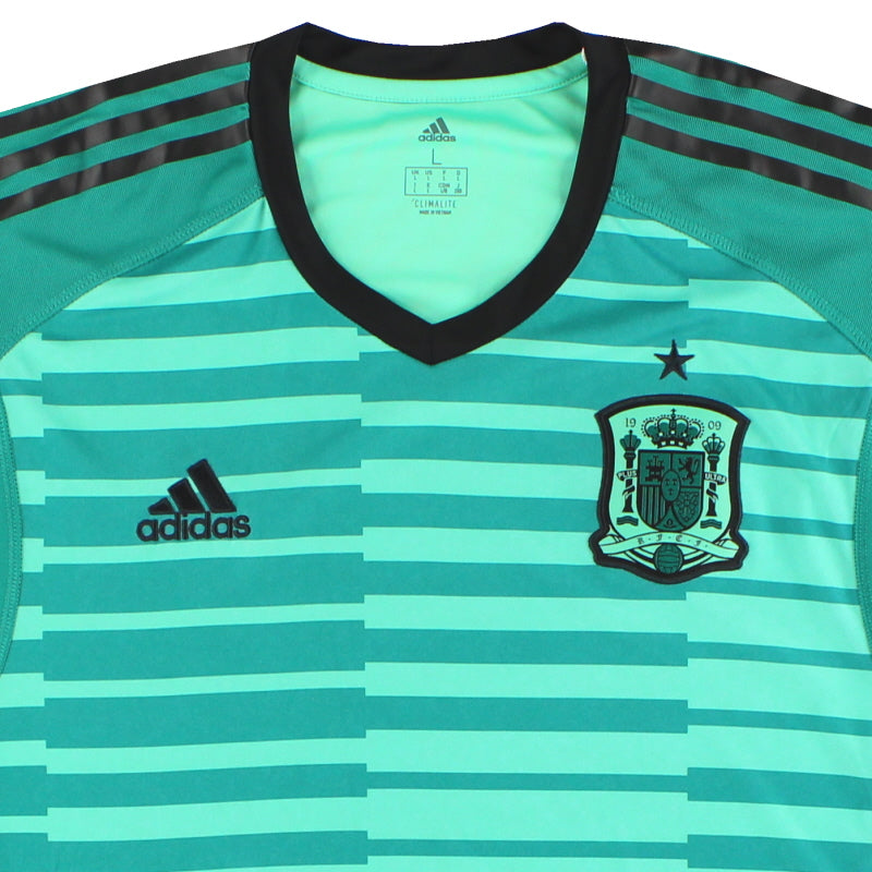 Goalkeeper shorts as worn when Spain were competing in the 2018 World Cup, being knocked out in the last 16 of the competition, losing 4-3 on penalties against hosts Russia after the tie finished 1-1 after extra time.