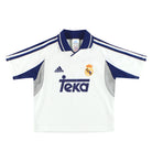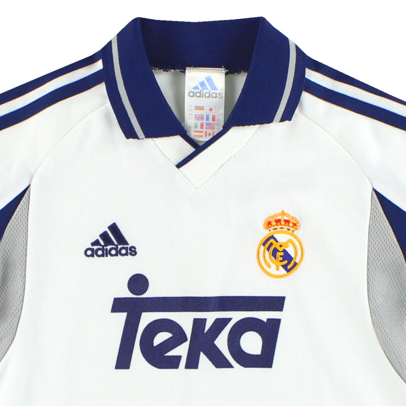 Classic home shirt as worn in Vincent del Bosque's first full season in charge of Real Madrid after winning the club's eighth European title in the previous season. The 2000-01 season saw Real Madrid win their first La Liga title in 4 seasons as they finished 7 points clear of second placed Deportivo La Coruna, they could not however defend their European title, being knocked out in the semi finals of the Champions League where they lost 3-1 on aggregate against Bayern Munich.