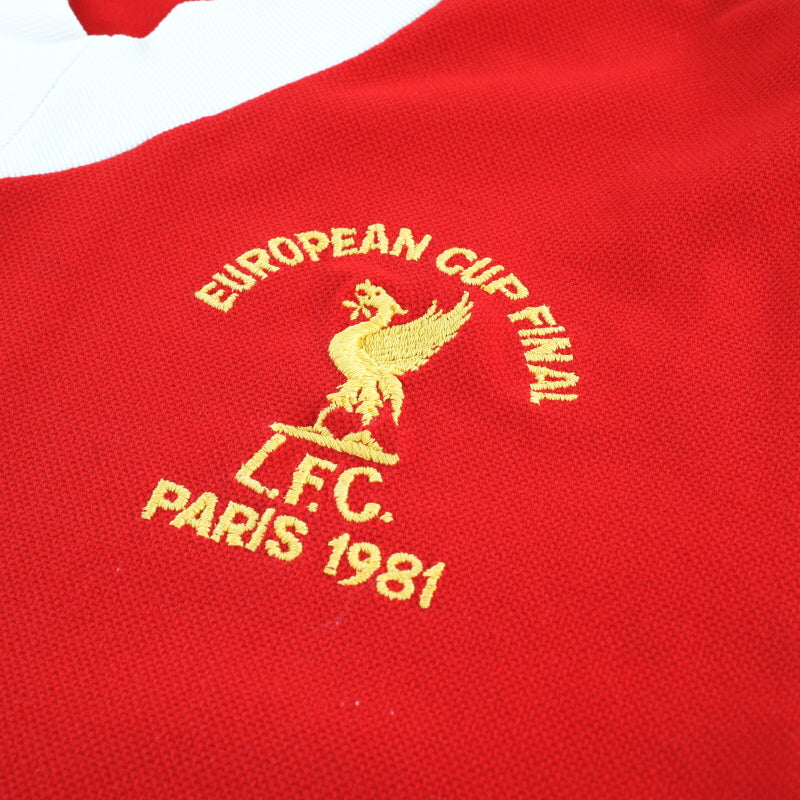 Details - Home shirt as worn during a successful period for Liverpool with the club winning two First Division titles in the 1979-80 and 1981-82 seasons, and also won two League Cup titles in the 1980-81 and 1981-82 seasons, beating West Ham and Tottenham in respective finals. Also worn when Liverpool won the 1980-81 European Cup, beating Real Madrid 1-0 with Alan Kennedy scoring the only goal of the game.