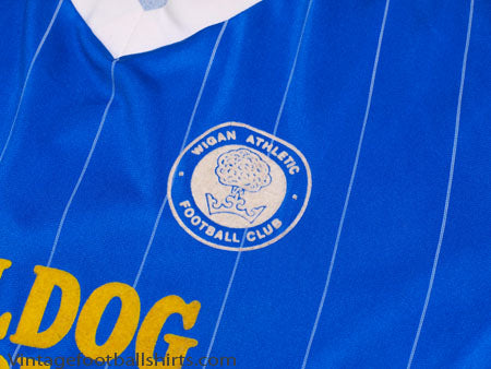 Details - Home shirt as worn when Wigan Athletic finished 18th in the Third Division, 1 point clear of the relegation zone, and were knocked out in the first round of the FA Cup, losing 2-1 against Telford United in a replay.
