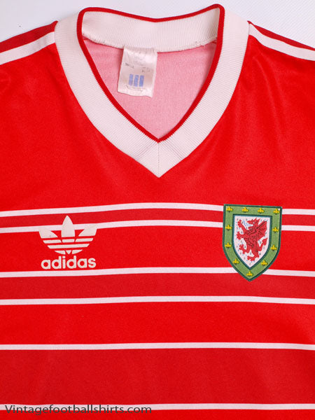 Details - Extremely rare home shirt when Wales competed in the 1986 World Cup qualifiers where they narrowly missed out, and also in the British Home Nations when they famously beat England 1-0 at the Racecourse, Wrexham.