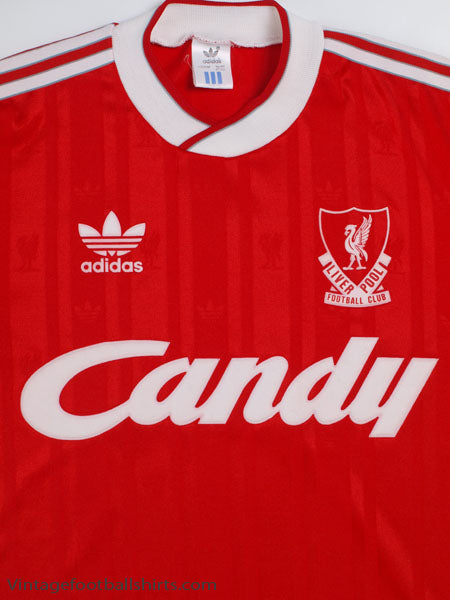 Details - Classic home shirt as worn when Liverpool failed to defend the First Division title in dramatic circumstances, missing out on the title on goals scored after a 91st minute goal from Michael Thomas on the last day of the season meant that Arsenal would finish as champions. Also worn when Liverpool won the FA Cup, beating local rivals Everton 3-2 in the final.