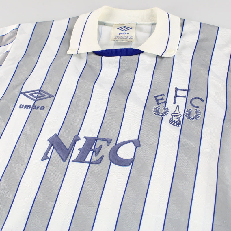 Details - Away shirt as worn when Everton finished 8th and 6th in the First Division in respective seasons and made it to the final of the 1988-89 FA Cup, losing 3-2 against Liverpool after extra time.