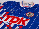 Details - Away shirt as worn when Ajax finished as champions of the Eredivisie, finishing 1 point ahead of second placed PSV Eindhoven, and were knocked out in the semi finals of the KNVB Cup, losing 4-2 on penalties against PSV Eindhoven after the tie finished 2-2 after extra time. Also worn when Ajax were knocked out in the first round of the UEFA Cup, losing 4-0 on aggregate against Austria Vienna.