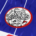 Details - Away shirt as worn when Ajax finished as champions of the Eredivisie, finishing 1 point ahead of second placed PSV Eindhoven, and were knocked out in the semi finals of the KNVB Cup, losing 4-2 on penalties against PSV Eindhoven after the tie finished 2-2 after extra time. Also worn when Ajax were knocked out in the first round of the UEFA Cup, losing 4-0 on aggregate against Austria Vienna.