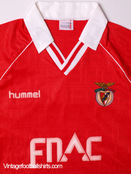 Details - Home shirt as worn when Benfica finished as runners up in the Primeira Divisao behind Porto before finishing 1 place ahead of Porto in the next season when they won the Primeira Divisao by 2 points. Also worn when Benfica made it to the 1990 European Cup final, losing 1-0 against AC Milan with Frank Rijkaard scoring the winning goal for Milan.