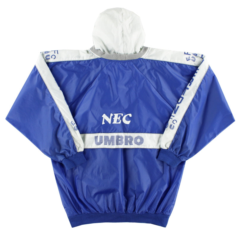 Details - Hooded drill top as worn when Everton finished 6th and 9th respectively in the First Division, and was also worn in a classic 4-4 draw with bitter rivals Liverpool in the FA Cup where they eventually won the second replay 1-0 before being knocked out in the next round after losing 2-1 against West Ham United.