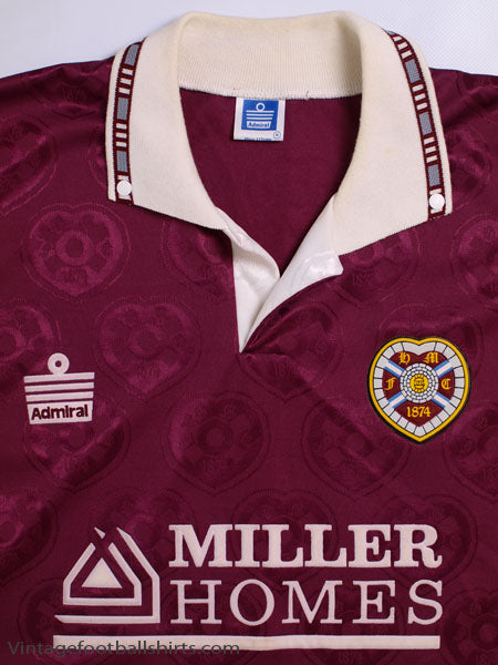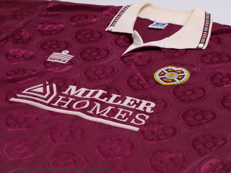 Details - Home shirt as worn when Hearts finished as runners up in the Scottish Premier Division, finishing 9 points behind champions Rangers, and were knocked out in the semi finals of the Scottish Cup, losing 4-2 on penalties against Airdrie after the replay finished 1-1.