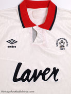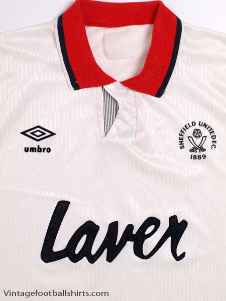 Details - Third shirt as worn when Sheffield United finished 9th and 14th in the First Division and Premier League respectively with the First Division being rebranded and made it to the semi finals of the 1992-93 FA Cup, losing 2-1 after extra time against local rivals Sheffield Wednesday.