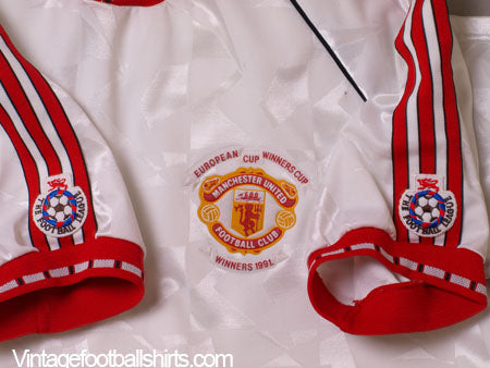 Features - European Cup Winners 1991 embossed around club badge, Football League patches stitched to sleeves