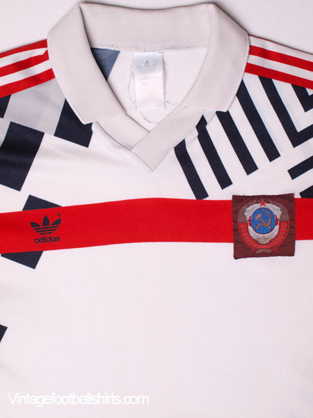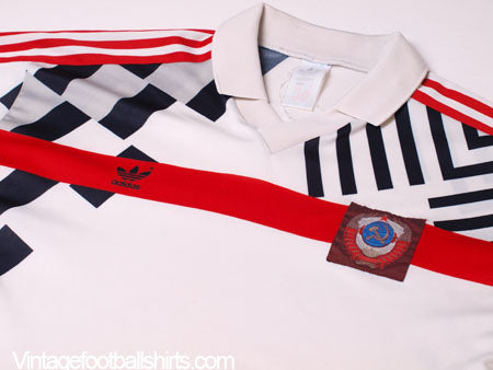 Details - Away shirt as worn when the Soviet Union successfully qualified for the 1992 European Championships but did not compete due to the dissolution of the Soviet Union and were replaced by the CIS