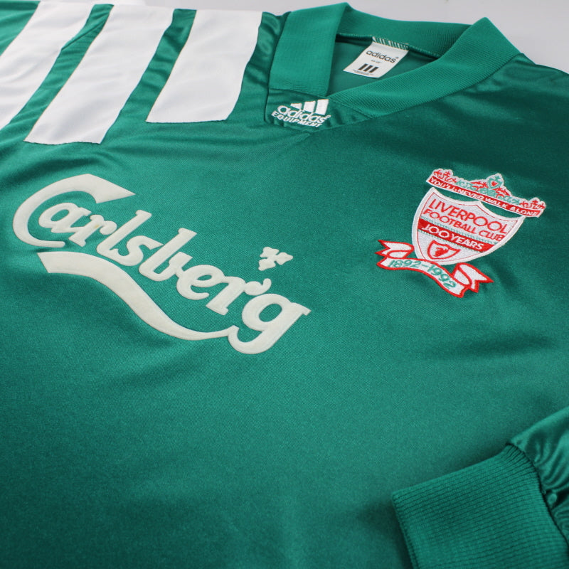 Details - Classic adidas Centenary shirt as worn when the side finished 6th in the Premier League's inaugural season, mainly due to their poor away form, and failed to defend the FA Cup which they won in the previous season, being knocked out in the third round of the competition as they lost 2-0 in a replay against Bolton Wanderers. Also worn when Liverpool were knocked out in the second round of the European Cup Winners' Cup, losing 6-2 on aggregate against Spartak Moscow.