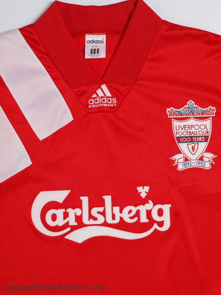 Details - Classic adidas Centenary shirt as worn when the side finished 6th in the Premier League's inaugural season, mainly due to their poor away form, and failed to defend the FA Cup which they won in the previous season, being knocked out in the third round of the competition as they lost 2-0 in a replay against Bolton Wanderers. Also worn when Liverpool were knocked out in the second round of the European Cup Winners' Cup, losing 6-2 on aggregate against Spartak Moscow.