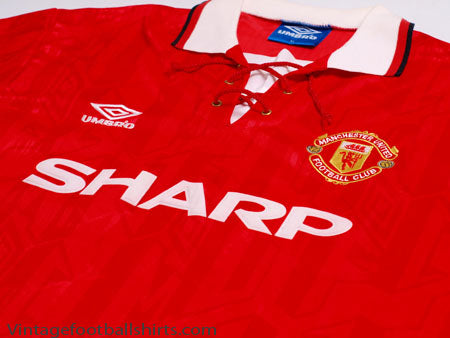 Details - Classic home shirt as worn in the first 2 seasons of the Premiership, the club winning the league on both occasions. The shirt is a collectable for United fans as it is the kit in which they captured their first league title in 26 years. The lace collar is instantly recognisable and is somewhat of a rarity in modern day kits