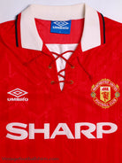 Details - Classic home shirt as worn in the first 2 seasons of the Premiership, the club winning the league on both occasions. The shirt is a collectable for United fans as it is the kit in which they captured their first league title in 26 years. The lace collar is instantly recognisable and is somewhat of a rarity in modern day kits