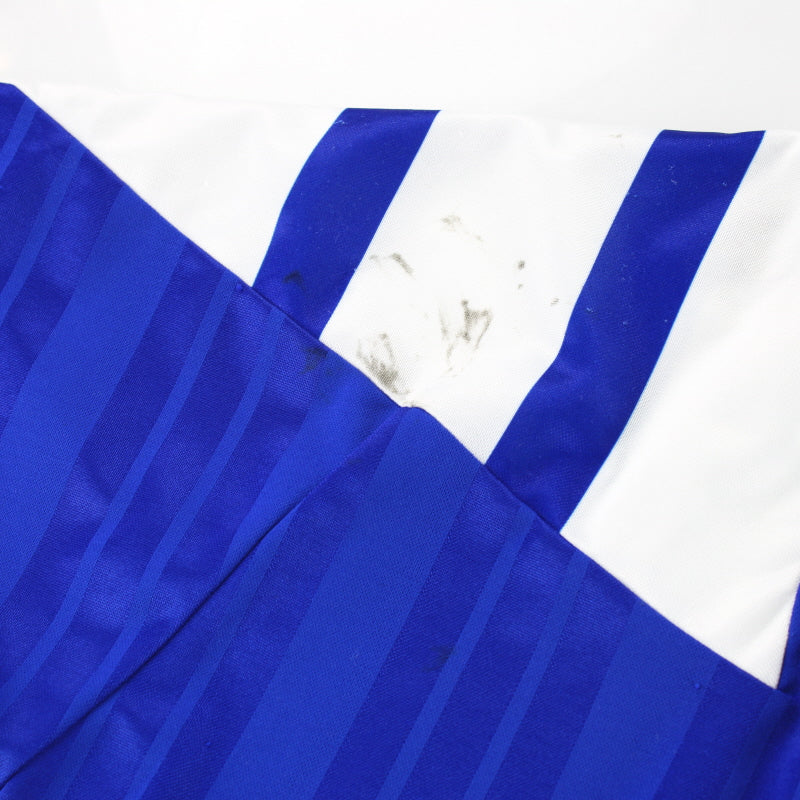 Details - Home shirt as worn when Rangers finished as champions of the Scottish Premier Division in back to back seasons and also won the Scottish League Cup in back to back seasons, beating Aberdeen in respective seasons. Also worn when Rangers won the 1992-93 Scottish Cup final, beating Aberdeen 2-1 in the final, and were knocked out in the group stages of the 1992-93 European Cup, finishing as runners up in their group, 1 point behind group winners Marseille and a place in the European Cup final.