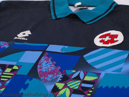 Details - Goalkeeper shirt believed to have been worn by or issued to Marco Pascolo when Switzerland were attempting to qualify for the 1994 World Cup, successfully qualifying for the competition after finishing 2nd in their qualification group.