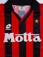 Details - Home shirt as worn when AC Milan won three trophies, in a very successful season, a 4-0 win over Barcelona in the European Cup Final, a Serie A title and the Supercoppa Italiana under coach Fabio Capello