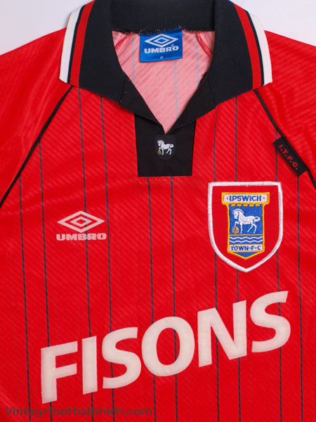 Details - Classic away shirt as worn when Ipswich avoided relegation on the last day of the 1993-94 season when Sheffield United were beaten by Chelsea, and Oldham Athletic failed to beat Norwich City