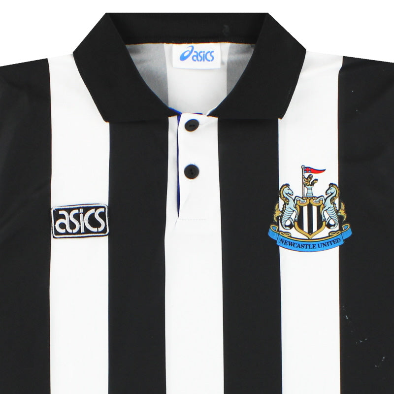 Details - Classic home shirt as worn when Newcastle United finished 3rd and 6th in the Premier League in respective seasons and were knocked out in the quarter finals of the 1994-95 FA Cup, losing 1-0 against Everton. Also worn when Newcastle United were knocked out in the second round of the 1994-95 UEFA Cup, being knocked out on away goals against Athletic Bilbao after the tie finished 3-3 on aggregate.