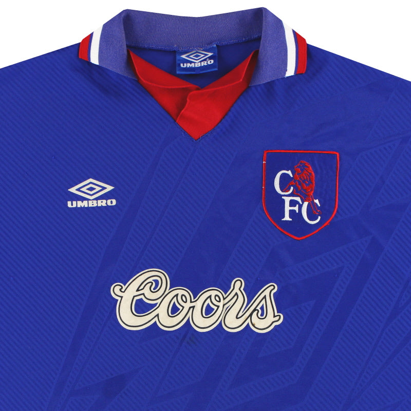 Details - Home shirt as worn when Chelsea finished 11th in the Premier League and made it to the semi finals of the UEFA Cup Winners Cup, losing 4-3 on aggregate against Real Zaragoza.