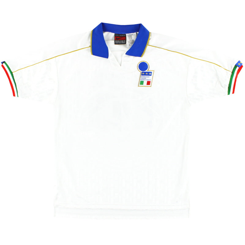 Details - Away shirt believed to have been worn by or issued to #16 (Donadoni) when Italy were attempting to qulaify for the 1996 European Championship with Italy successfully qualifying for the competition after finishing as runners up in their qualficiation group, qualifying as one of the six best runners up.