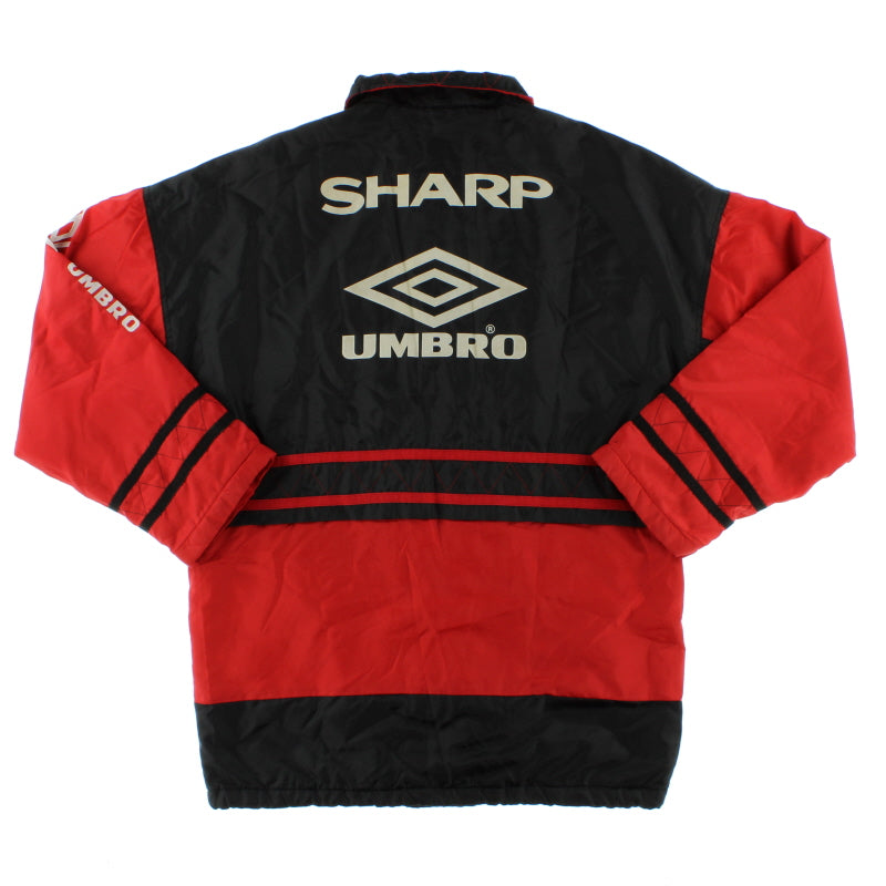 Details - Bench coat as worn when Manchester United as runners up in the Premier League, finishing 1 point behind champions Blackburn Rovers, and also finished as runners up in the FA Cup after losing 1-0 in the final against Everton with Paul Rideout scoring the winning goal in the first half.