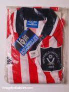 Details - Home shirt as worn when Sheffield United finished 8th in the First Division, finishing 4 points off a play off place, and were knocked out in the third round of the FA and League Cup, losing against Manchester United and Bolton Wanderers in respective competitions.