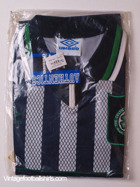 Details - Away shirt as worn when Celtic finished 4th and 2nd in the Scottish Premier Division in respective seasons and won the 1994-95 Scottish Cup after beating Airdrie 1-0 in the final. Also worn when Celtic were knocked out in the second round of the UEFA Cup Winners' Cup, losing 4-0 on aggregate against Paris Saint-Germain.
