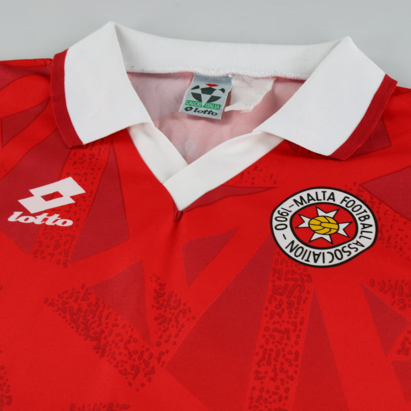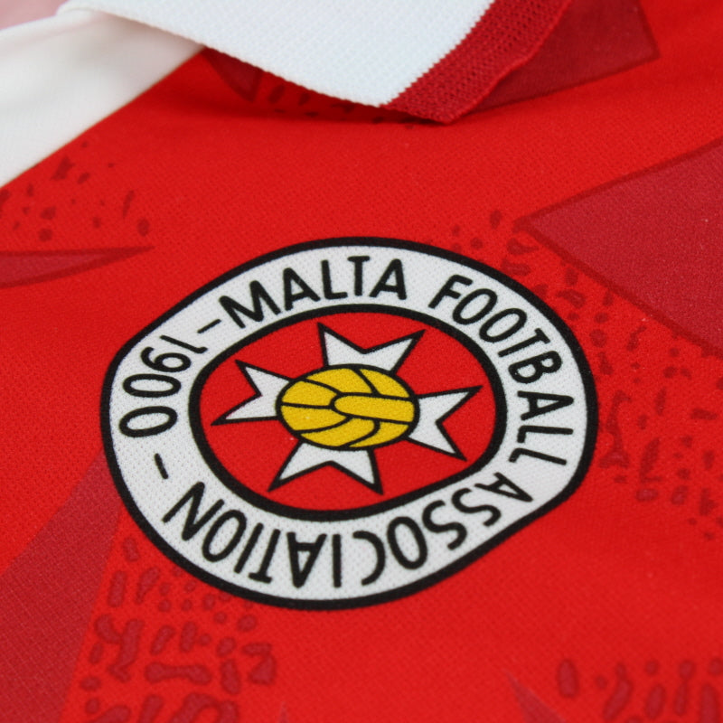 Details - Home shirt as worn when Malta were competing in qualification for the 1996 European Championship, finishing bottom of their group with 2 points after draws against Belarus and the Czech Republic.