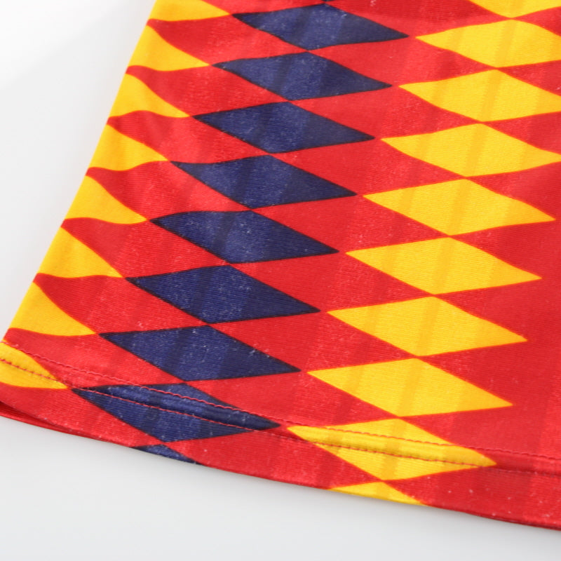 Details - Home shirt as worn when Spain were competing in the 1994 World Cup when Spain were knocked out in the quarter finals of the competition, losing 2-1 against Italy.