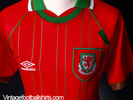 Details - Home shirt as worn in the Euro 1996 Qualifiers when Wales were drawn in a tough group along with Germany and Bulgaria, with Wales finishing second from bottom on a mere 8 points.