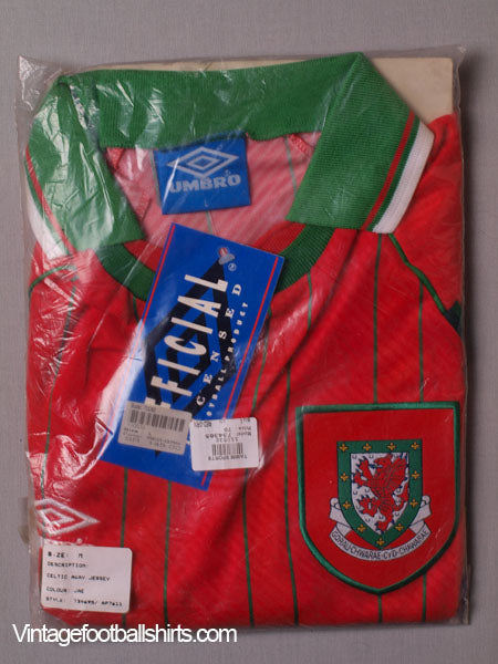 Details - Home shirt as worn in the Euro 1996 Qualifiers when Wales were drawn in a tough group along with Germany and Bulgaria, with Wales finishing second from bottom on a mere 8 points.
