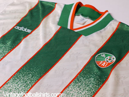 Details - Match issue away shirt introduced during the national sides friendly fixtures before the kick-off of the 1994 World Cup in America. The shirt was never worn during the fixtures but the design was first used during the sides group stage game against Mexico