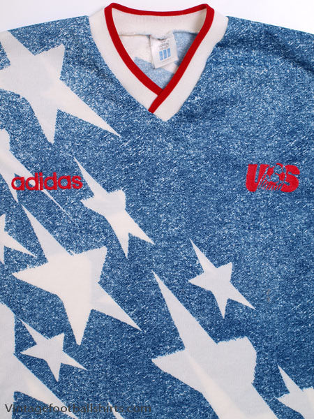 Details - Classic design away shirt from the World Cup of 1994 which USA hosted, the side reached the second round with a 2-1 win over Columbia, and a 1-1 draw with Switzerland, but lost out in the knockout to eventual winners Brazil. Highly sought after shirt!