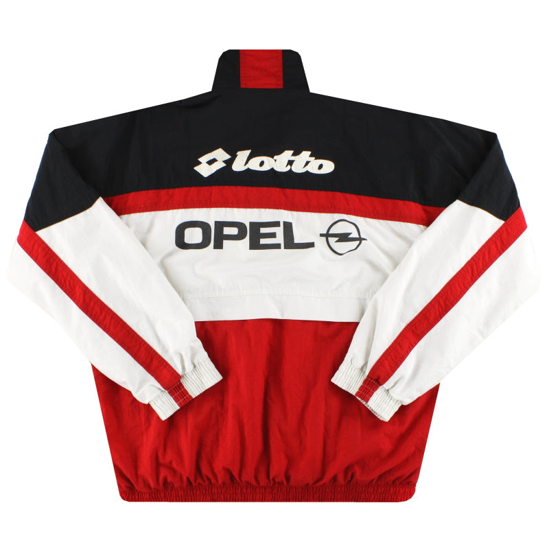 Details - Training jacket as worn when AC Milan gained their fifteenth Italian Championship led by famous world-class players such as Roberto Baggio, Marco Simone and George Weah under manager Fabio Capello. Also worn when AC Milan were knocked out in the quarter finals of the UEFA Cup, losing 3-2 on aggregate against Bordeaux.