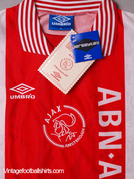 Details - Home shirt as worn when Ajax finished as champions of the Eredivisie, finishing a point ahead of PSV, and made it to the final of the Champions League when they were trying to defend their title, but finished as runners up after they lost 4-2 on penalties against Juventus after the tie finished 1-1 after extra time.