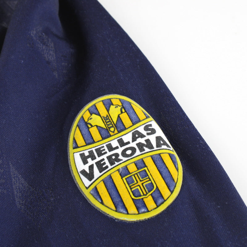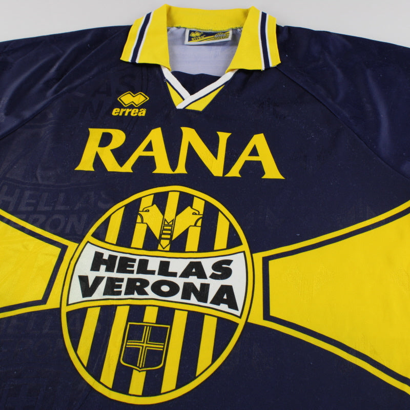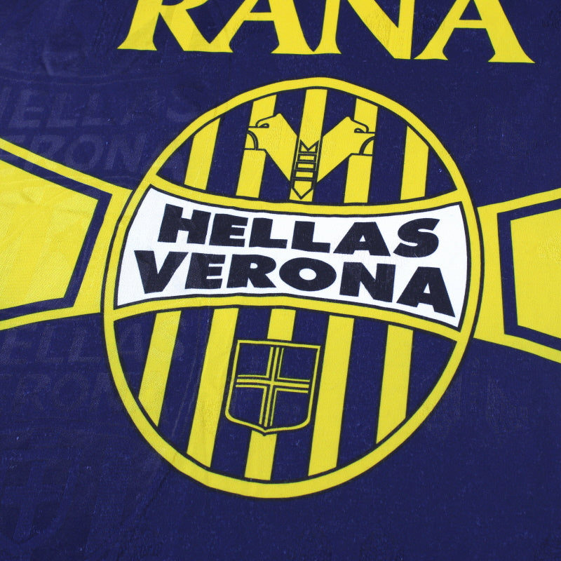 Details - Home shirt as worn when Hellas Verona earned promotion to Serie A after finishing as runners up in Serie B, finishing 2 points behind champions Bologna. Also worn when Hellas Verona were knocked out in the first round of the Coppa Italia, losing 2-0 against Bologna.