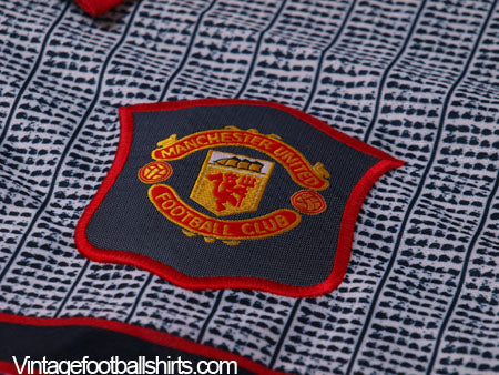 Details - One of the most famous yet short-lived United shirts! after going 3-0 down at half time against Southampton at the Dell, the players blamed the bad performance on not being able to see each other, Alex Ferguson's first words in the dressing room were to believed to be 'Get that kit off, you're getting changed' and the team duly did, into their blue-and-white striped kit. There was a slight improvement after the break, as Ryan Giggs scored a late consolation. However, the grey 'Invisible' kit was scrapped
