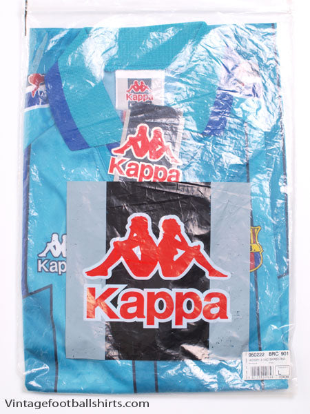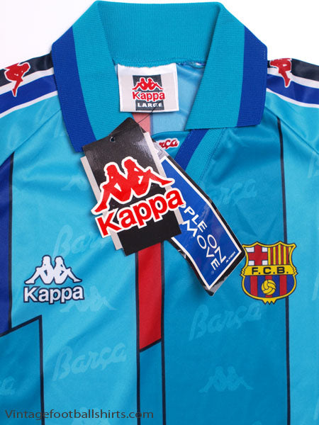 Details - Away shirt as worn when Barcelona finished 3rd and 2nd respectively in La Liga and made it to back to back Copa del Rey finals, losing 1-0 after extra time against Atletico Madrid in the 1995-96 season before beating Real Betis 3-2 after extra time in the 1996-97 season. Also worn when Barcelona won the 1996-97 UEFA Cup Winners' Cup, losing 1-0 against Paris Saint-Germain.