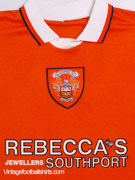 Details - Home shirt as worn when Blackpool finished 3rd in the Second Division in the 1995-96 season, failing to gain promotion to the First Division after losing 3-2 on aggregate against Bradford City in the play off semi finals. Blackpool could not make it back to the play offs in the next season after finishing 7th in the Second Division, 4 points short of a play off place.