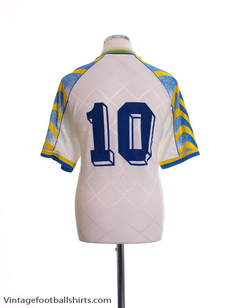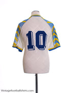Details - Very rare third shirt as worn in legendary coach Nevio Scala last season before stepping down in the 1995-96 campaign, Parma failed to win a trophy, but the highlight of the season was the debut of a future superstar, Gianluigi Buffon who saved a penalty on his debut against AC Milan. The following season Parma came very close to winning the Serie A title, finishing 2nd - 2points behind Juventus