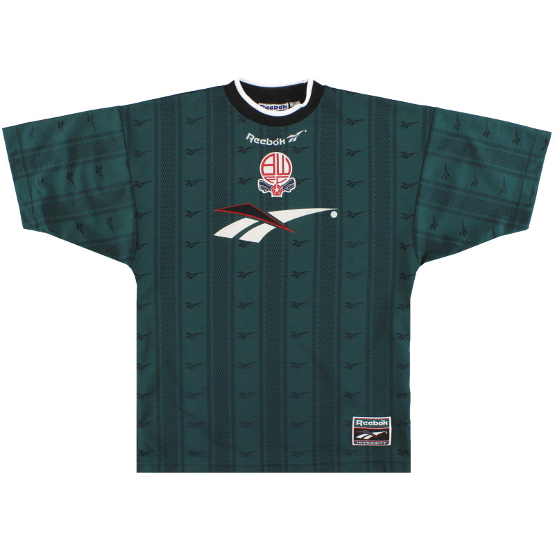 Details - Training shirt as worn when Bolton were promoted to the Premier League after finishing as champions of the First Division and made it to the quarter finals of the League Cup, losing 2-0 against Wimbledon.