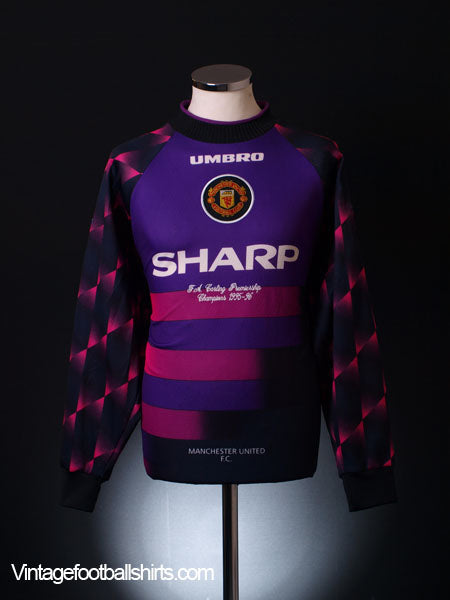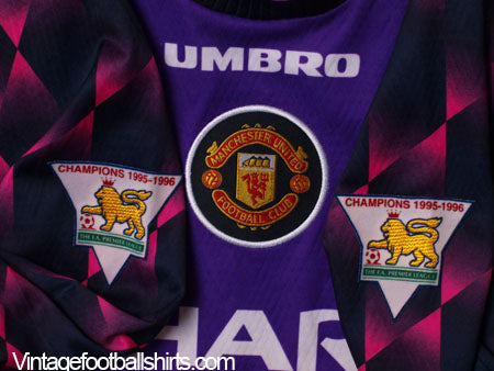 Features - Schmeichel #1 to reverse in official felt print, Premier League champions patches to both sleeves, 'F.A. Carling Premiership Champions 1995-96' embroidered to front