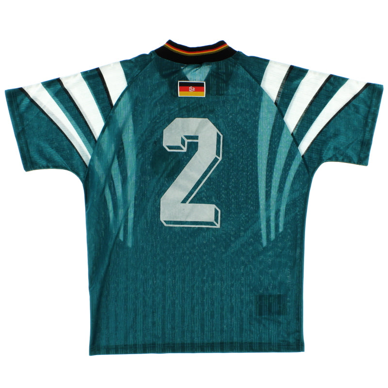 Details - Away shirt as worn when Germany competed in the 1996 European Championship when Germany won the competition after beating the Czech Republic 2-1 in the final with Oliver Bierhoff scoring the golden goal in extra time.