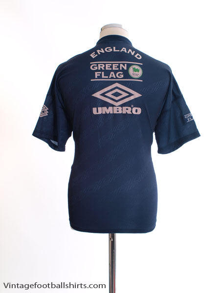 Details - Training shirt as worn when England competed in the 1996 European Championships, being knocked out in the semi finals of the competition after losing 6-5 on penalties against Germany after the tie finished 1-1 after extra time.