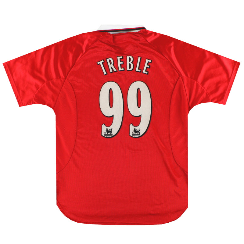 Details - Home shirt as worn when Manchester United made it all the way to the 1999 Champions League final. However, they fell behind early after Mario Basler scored in the 6th minute with Paul Scholes and Roy Keane being suspended for the game. Manchester United managed to come back in the match though with goals coming from Teddy Sheringham and Ole Gunnar Solskjaer in added time meaning Manchester United would become champions of Europe.