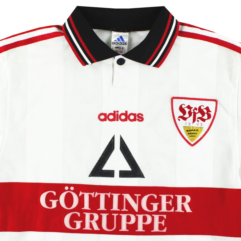 Details - Home shirt as worn when Stuttgart finished 4th in the Bundesliga and were knocked out in the semi finals of the DFB-Pokal, losing 3-0 against Bayern Munich. Also worn when Stuttgart made it to the final of the UEFA Cup Winners' Cup, losing 1-0 against Chelsea with Gianfranco Zola scoring the winning goal in the 71st minute.