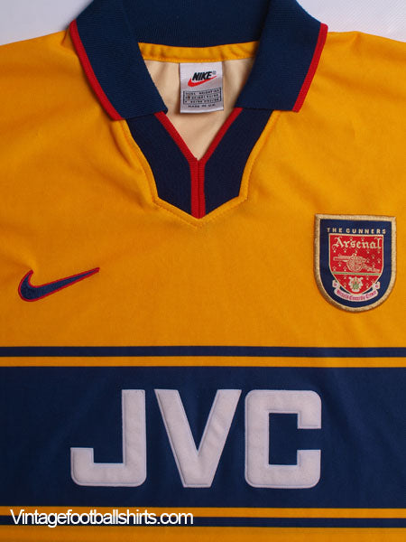 Details - Classic away shirt as worn when Arsenal won the 1997-98 Premier League title with Marc Overmars' goal in the last 10 minutes against title rivals, Manchester United, in March proving to be enough for Arsenal to finish as champions with Manchester United ending the season just 1 point behind. Arsenal failed to defend their title in the next season with Manchester United this time finishing 1 point ahead of Arsenal in second place.