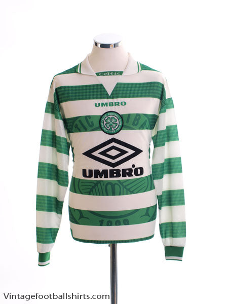 Details - Home shirt as worn when Celtic finished as champions of the Scottish Premier Division in the 1997-98 season before finishing as runners up in the next season, finishing 6 points behind champions Rangers. Also worn when Celtic won the 1998 Scottish League Cup final, beating Dundee United 3-0, and also made it to the 1999 Scottish Cup final, losing against Rangers in both seasons.